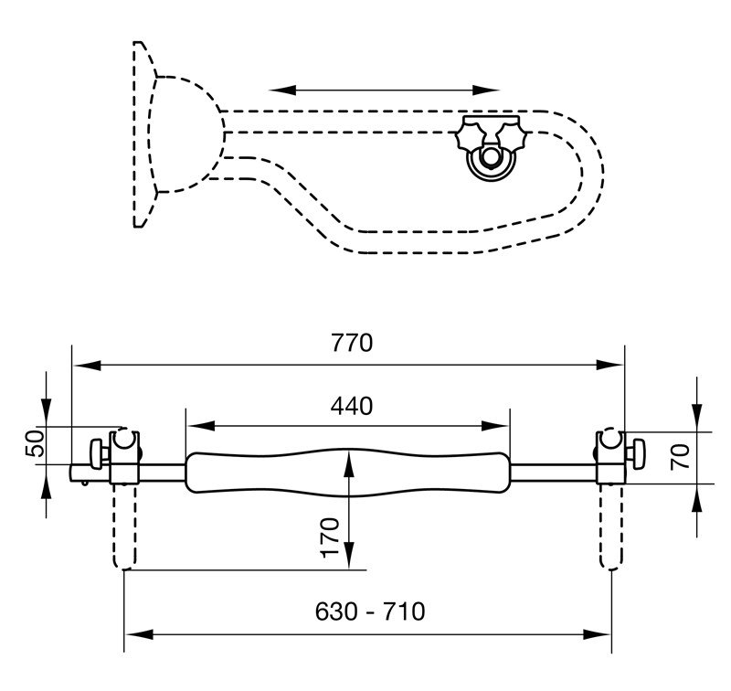 • Barra frontal para utilizar en combinación con asideros en forma de U (LI2601.0xx) o asideros abatibles (LI2603.3xx)